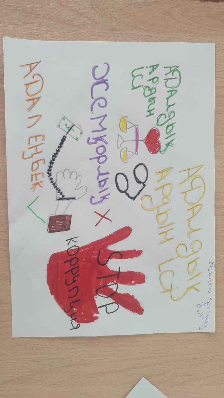 Әрбір оқушы өз туындысы арқылы әділдік пен ар-намыстың мәнін терең түсіндіріп, қоғамдағы адалдықтың маңызын шығармашылық тұрғыда жеткізді.