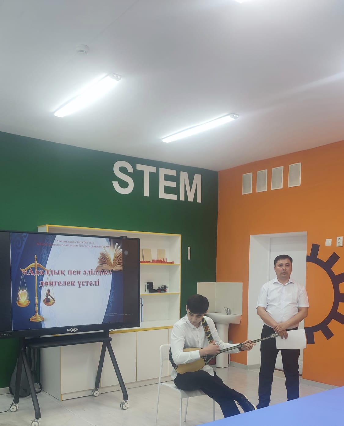 Шараның шымылдығын 11 «А» сынып оқушысы Төлеген Нұргелді домбырамен құлақтан кіріп, бойды алар әсем термемен ашты.