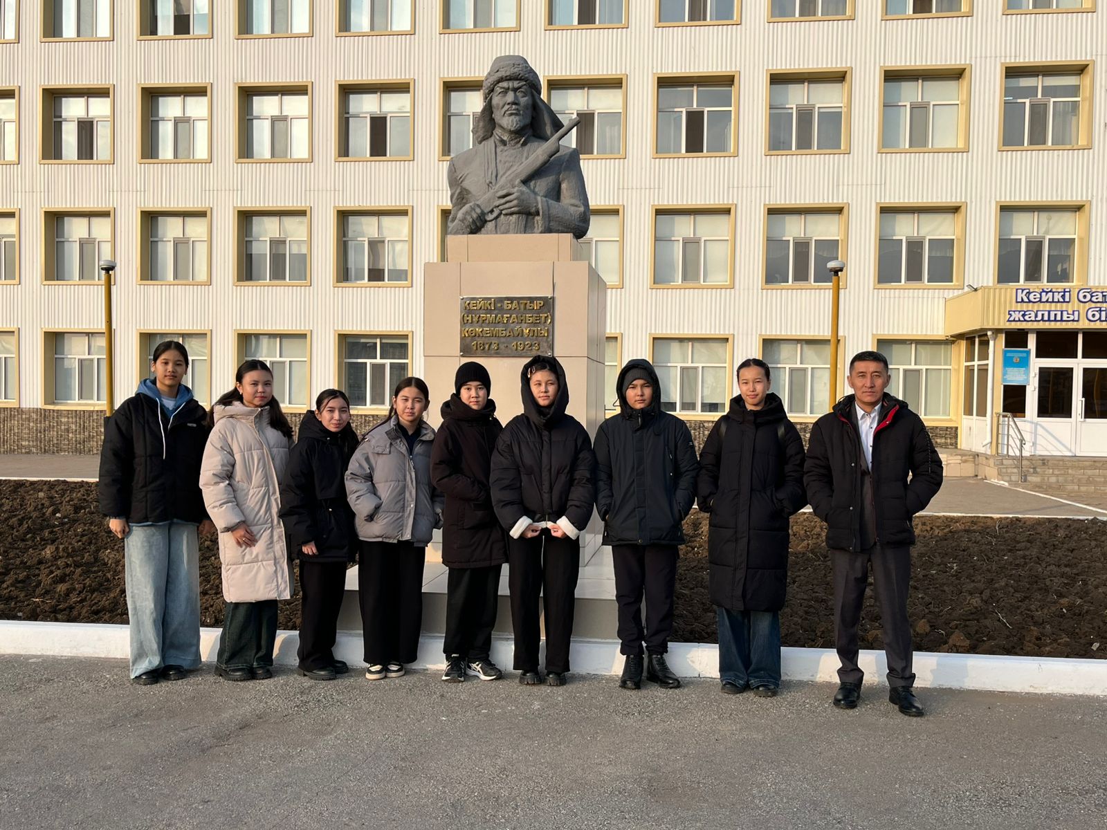 Бүгін мектебіміздің «Өлкетану» клубы оқушылары Кейкі батыр мұражайына тағылымды саяхат жасады. Экскурсия барысында оқушылар XX ғасырдың басындағы тарихи оқиғалармен, батырдың ерлік жолымен, жеке заттарымен және құнды архивтік материалдарымен танысты.