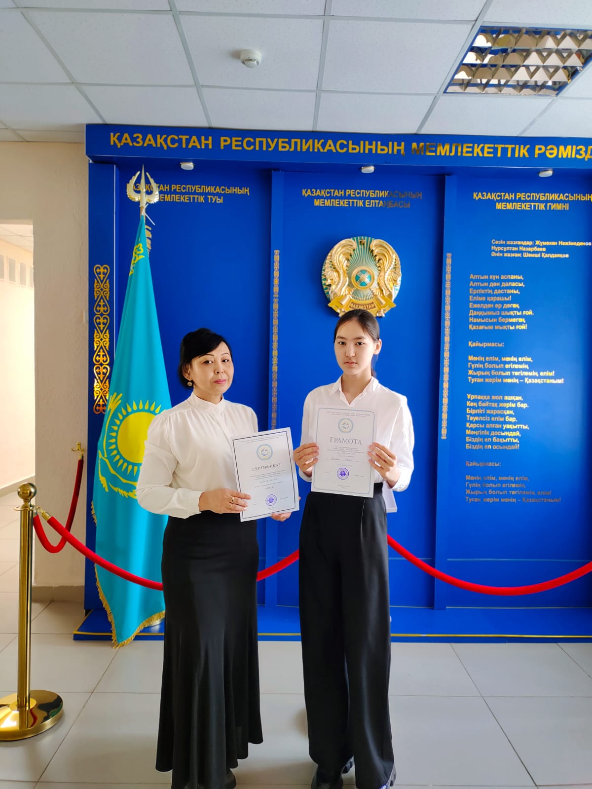 5-9 сынып оқушылары арасында республикалық «Тарих ата» қашықтық олимпиадасының І дәрежелі дипломымен 5-сынып оқушысы Тимурқызы Айару марапатталып, қорытынды турының жеңімпазы атанды.