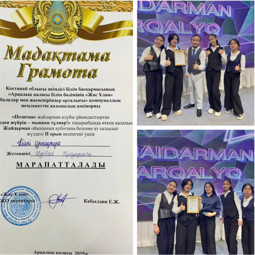 Командалык ойында: 1 - орын ( Маликов Али, Кикбай Нурасыл, Ибрагим Аружан).