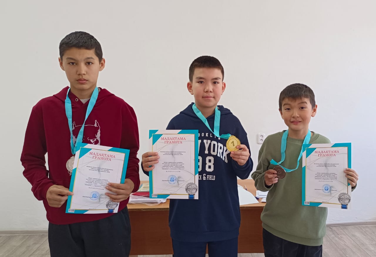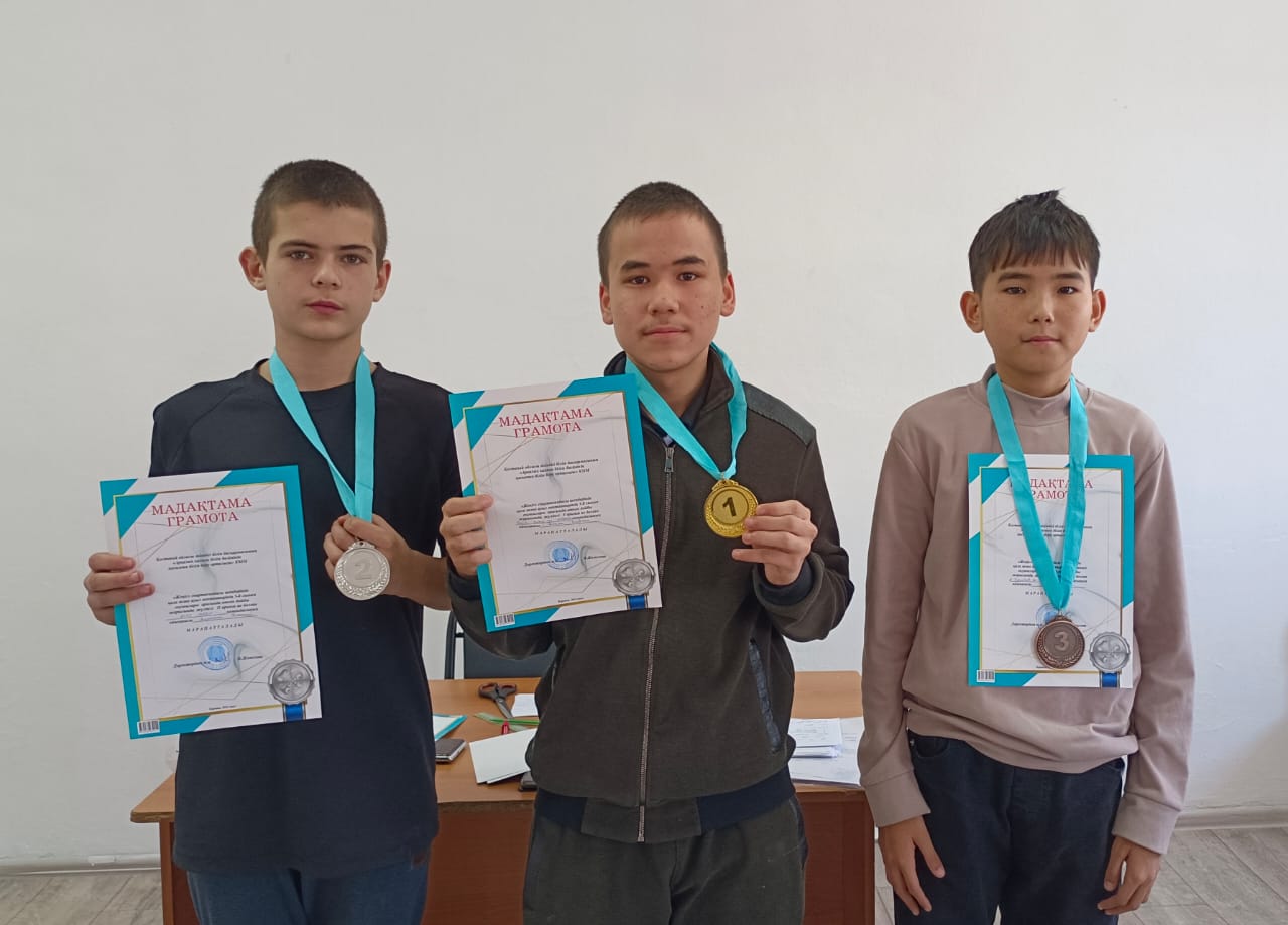 Жекелей ұлдар арасында: 1 - орын 1 - үстел Маликов Али, 2 - орын Кикбай Нурасыл, 2 - үстел 1 - орын Кикбай Нурали.