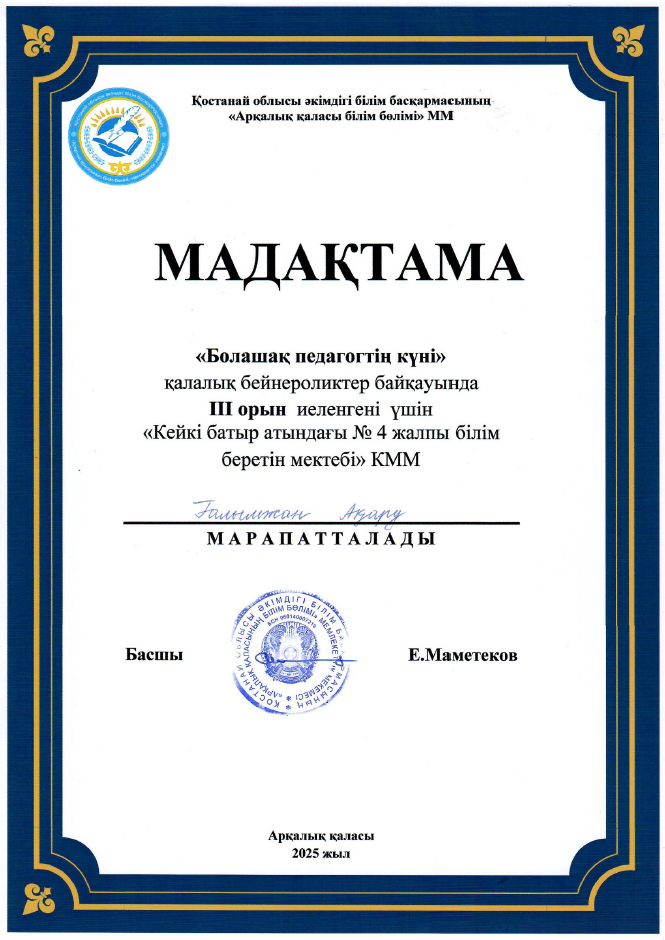 Мектеп директорының оқу-ісі жөніндегі орынбасары: