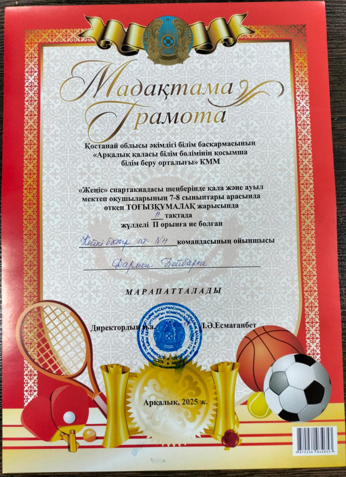 Алдағы уақытта спортшымызға сәттілік тілеп үлкен додаларда көруімізге тілектеспіз.
