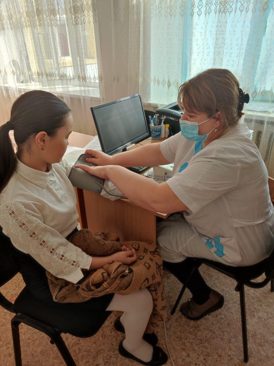 Работа медицинского пункта школы ведется регулярно под руководством медработника школы Шариповой Русланы Рустамовны. Медицинский кабинет оснащен всем необходимым оборудованием в соответствие с Санитарно-эпидемиологическими требованиями к объектам образования. Медицинский работник регистрирует справки, дает направления на обследования к участковому врачу, оказывает первую помощь, проводит разъяснительную работу с обучающимися и сотрудниками школы по вопросам ЗОЖ, контролирует медосмотр школьников и работников школы, имеет допуск к проведению профилактических прививок, В период с начала 2021-2022 учебного года пробу R-Манту получили 491 обучающийся, прививку БЦЖ (туберкулез) – 32 ученика, АбКДС – 54, КПК – 54, вирусный Гепатит «А» - 79 учащихся школы. Вакциной Pfizer на сегодняшний день привито 44 школьника.